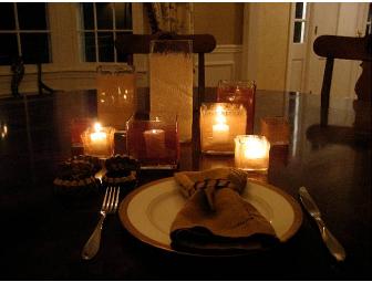 Dinner party for six from "Loree's Catering", 4 Elizabeth Street in Bethel.  A bottle of wine, as well as 6 napkin rings, votive centerpiece and place cards all handmade by children in Ms. Levy's class.