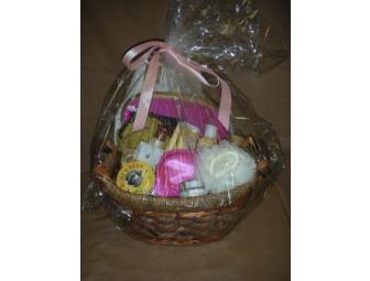 Look and feel great with a basket of beauty products which includes lotions and a beautiful multicolored topaz pendant in 14k gold.