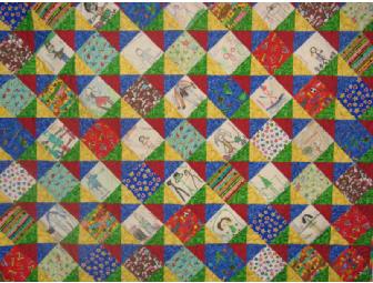 This quilt features artwork by VCES kindergarten students and was handcrafted by VCES grandparents. Its classic design and colors will complement any decor, imparting vivid inspiration of the gifts we have in God's children. Each artwork square depicts images of what the children want to be when they grow up and features the scripture: "For I know the plans I have for you, declares the Lord, plans to give you hope and a future." Jeremiah 29:11