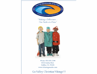 Smile with Confidence Dr. Dante Gonzales is one of Dublin's leading orthodontists. Serving our community for years, he's focused on providing excellent orthodontic care in a comfortable environment. Offering the latest technology, Dr. Gonzales has expertise using Invisalign, invisible ceramic braces and more. · Comprehensive Orthodontic Treatment for an adult or child · Valued at $6,200 · Achieve the healthy, beautiful smile of your dreams · Expires May 1, 2010