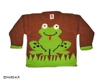 Bid on this Beautiful Handmade Sweater with an adorable happy frog. I think he just caught dinner :D.