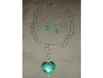 Sterling Silver Necklace/Earring Set with 2x2 Turquoise Heart